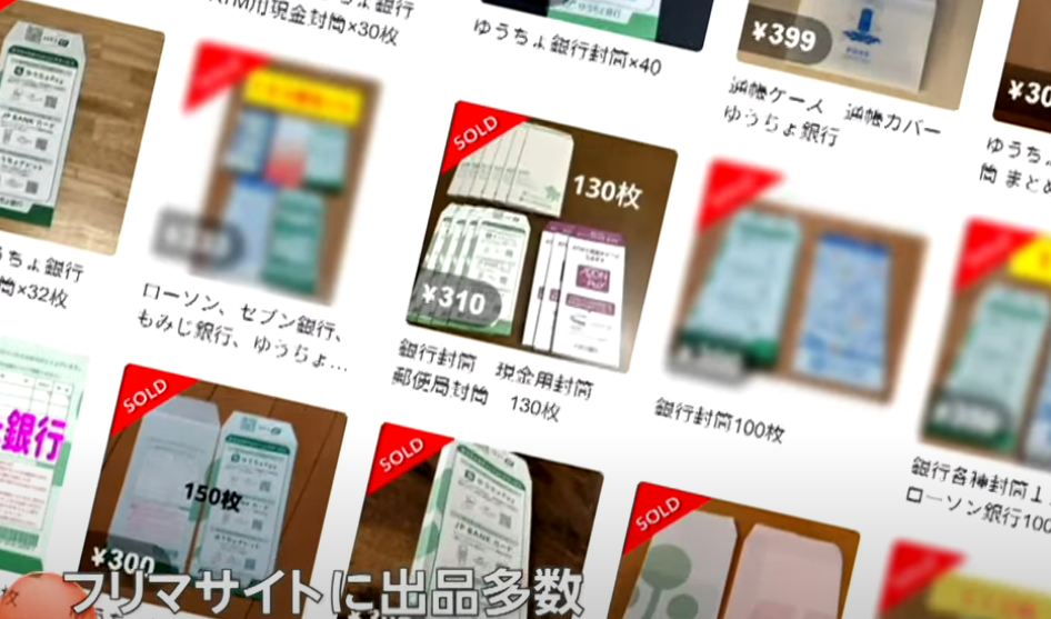 銀行のATMコーナーなどに置いてある現金用の封筒が、大手フリマサイトやオークションサイトで大量に転売されており、このことがXで取り上げられて、驚く声が上がっている。