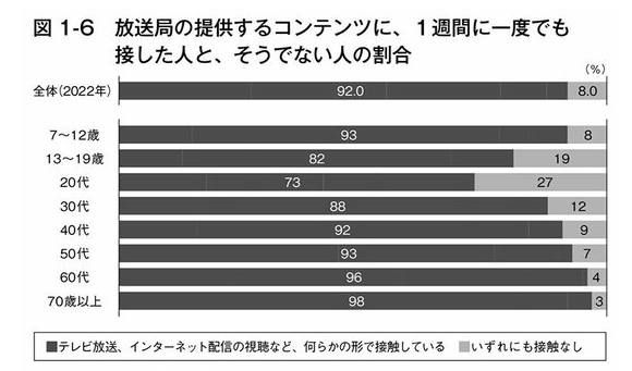 テレビ番組だけでなく、録画・配信・SNSのテレビコンテンツにも触れない若者が急増している。