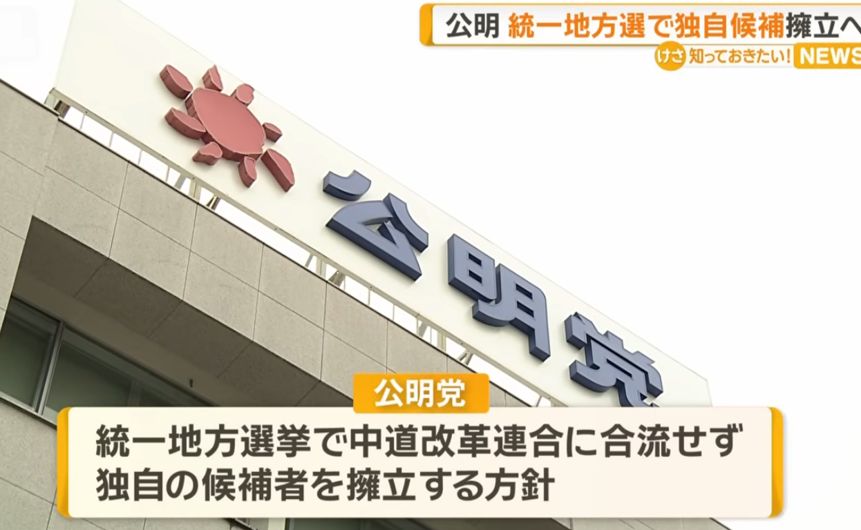 公明党は、地方議員の中道改革連合への合流を当面見送り、来年春の統一地方選は独自候補を擁立して臨む。